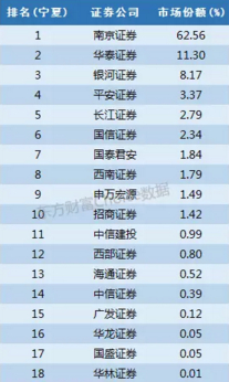 南京证券托管了西北证券公司的营业部,故而获得了其在宁夏62%的市场份额。