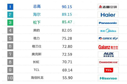 十大空调品牌网络口碑大比拼 志高夺冠