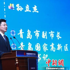 总投资达127亿元的36个新兴产业项目21日晚集中签约落户青岛高新区(红岛经济区),图为青岛市副市长、高新区工委书记孙立杰在签约仪式现场致辞。 青岛高新区供图