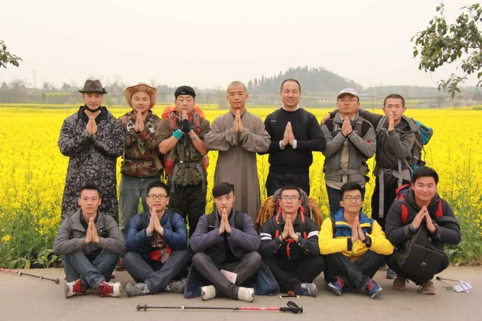本来只有我一名僧人走,这几天又有一名从雪域高原来的藏传佛教的师父,还有一名从南斯拉夫来的南传佛教的年轻师父,我算是从汉传佛教出家。三大教派的三名师父一起行脚去峨眉山,很殊胜,之前从来没有想象过的。