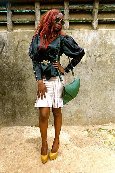有一个笑话是这么讲的:要把一个女人逼疯很容易,只需给她弄满满一柜子衣服,却不给一面镜子。一方面,衣服是穿给别人看的,另一方面,穿衣是为了做自己的主人。街拍镜头捕捉到的时尚,往往属于后者,潮人穿的是“自己的衣服”。看邓禄普的弗里敦街拍,我的感觉就是,这里没有太成体系的时尚产业,创意服饰成风,都是因为穿衣的人自己喜欢。