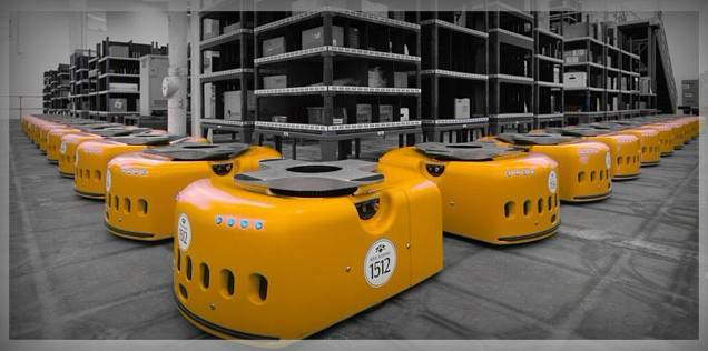 Kiva系统是一种外形像冰球的机器人,会扫描地上条码前进,能根据无线指令的订单将货物所在的货架从仓库搬运至员工处理区,这样工作人员每小时可挑拣、扫描300件商品,效率是之前的三倍,并且Kiva机器人准确率达到了99.99%。它有三大好处,首先,减少人力浪费,员工无需在仓库中四处走动;其次,用传送带取代传统的运输装置;第三,有助于更快扩展升级。