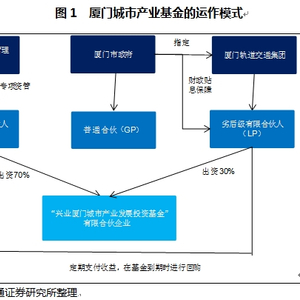 以厦门城市产业基金为例,2015年2月4日,兴业基金管理有限公司与厦门轨道交通集团签署了厦门城市产业基金合作协议,投资于厦门轨道交通工程项目,总规模达100亿元。由兴业基金管理有限公司的子公司——兴业财富资产管理有限公司(简称兴业财富)设立专项资管计划,与厦门市政府共同出资设立有限合伙企业,其中,兴业财富出资70%,为优先级有限合伙人;厦门市政府指定厦门轨道交通集团为劣后级有限合伙人,出资30%;厦门市政府提供财政贴息保障。厦门轨道交通集团按协议定期支付收益给兴业财富,并在基金到期时对兴业财富所持有的权益进行回购,行使劣后级有限合伙人的责任(见图1)。