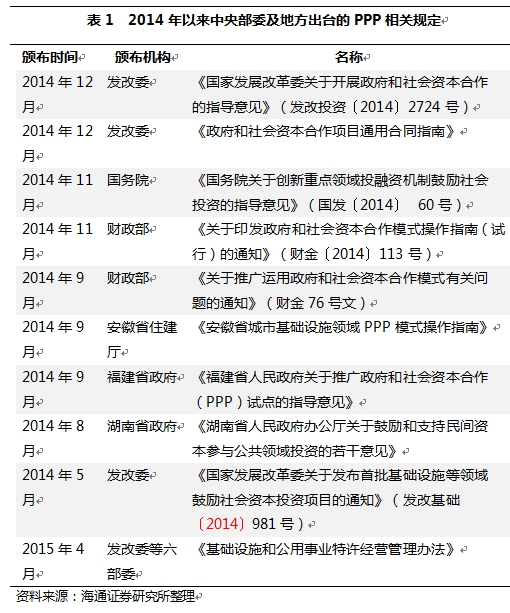表1 2014年以来中央部委及地方出台的PPP相关规定