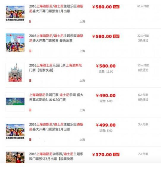 27日,本报记者在淘宝上看到几十家类似小店在“预售”上海迪士尼门票,大部分的票价都超过500元,部分店铺的成交数字已经有几十单。
