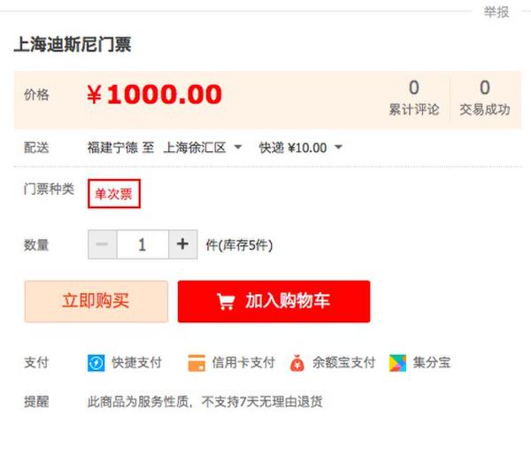 而有些“黄牛”则表示,客人可以先支付一部分钱作为“订金”,若预订成功则收取尾款,若不成再做退款处理。比如,有一个卖家推出的是先行支付1元进行预约,待上海迪士尼门票到手再支付尾款。也有将其他酒店等产品打包在内的卖家,打出了2988~7888元的高额价格。