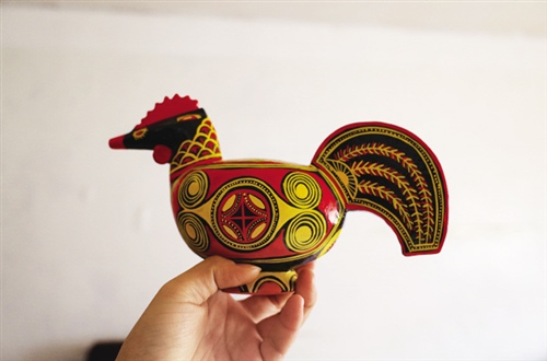每年7~9月,是巫且最忙的时候,他要连续70天争分夺秒地绘制图案。只有这三个月,温度和湿度适合漆液融化、上色。排除掉阴雨天,有效制作时间不超过70天。巫且往往天一亮就开始拿笔绘画,太阳落山之后还要继续个把钟头。红色与黄色为主基调的图案,与作为底色的黑漆形成鲜明的对比,整体美观、匀称、饱满,繁而不乱,这是最考验手艺人的技艺工序。