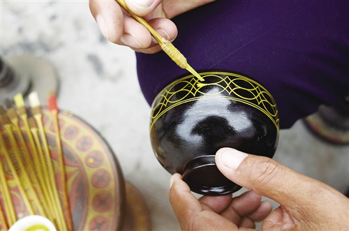 至今,吉伍巫且仍坚持用古法制作漆器,但他也不得不让步,生产化工漆的产品,但图案的绘制务求细腻,毕竟不能抱着传统手艺喝西北风。尽管如此,吉伍巫且依然对那些盲目追求市场,简化图案,制作粗陋而毫无质地的漆器滥竽充数的匠人嗤之以鼻。也许是作为国家级传承人,他仍珍视这门手艺的尊严。