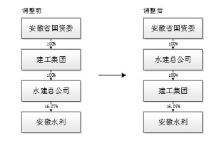 安徽省人民政府专题会议已原则同意推进本次交易涉及的建工集团整体改制上市工作。本次吸收合并前,需对建工集团进行相关的股权调整(以下简称“股权调整”),包括依次将水建总公司现持有的安徽水利16.07%国有股权划转至建工集团,将水建总公司划转至安徽省国资委,将建工集团划转至水建总公司。股权调整后,水建总公司为本次吸收合并的交易对方,安徽水利为合并方,建工集团为被合并方。截至本预案签署日,相关审批事项仍在进行之中,若建工集团整体改制上市工作方案进行后续修订,将可能形成对本次交易方案的调整。股权调整前后的安徽水利控制关系变化如下图所示:
