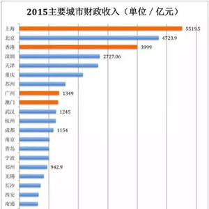 广州2015年公共预算收入仅为1349.1亿元,仅为深圳的一半左右,不仅远不及天津和重庆两大直辖市,也不如苏州,与排名其后的武汉和杭州差不多,仅位列全国第七。要知道,广州的经济总量可是连续20多年高居全国第三,是我国经济的“第三城”。