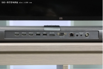 小米电视3S 65英寸曲面主机的接口部分包括HDMI、USB、MiPort、VGA、网络、AV in、Audio out和有线电视接口,非常齐全。同时外置的好处是驳接更方便,也方便线材打理。
