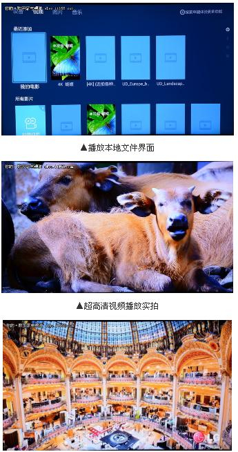 测试过程中我们采用的是播放本地文件的方式,即使是高码率的4K影片,在播放过程当中没有出现卡顿跳帧的情况,播放流畅,快进快退的操作反应也非常灵敏,整个电视的解码能力得到了充分的体现。