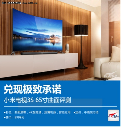 从配置再到定价来说,可以看出小米打算走高端用户的决心:65寸曲面屏幕、4K超清分辨率、分体式的设计、超薄金属机身,完全符合一款旗舰级电视的定位。从实测表现来说,画质和音质也达到了目前曲面电视的顶尖水平,NTSC色域高达86.97%,同时拥有顶级的黑场控制表现,动态清晰度也比较优秀,即使面对2、3万元的外资品牌旗舰电视也丝毫不逊色,所以8999元的价格还是非常值的。当然如果不喜欢曲面屏幕,70英寸和60英寸的小米电视3也是不错的选择。