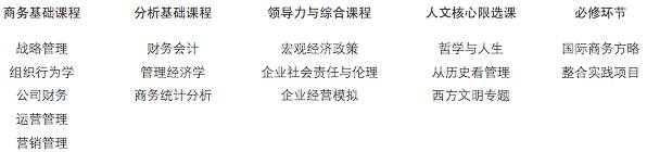 从课程结构来看,北大光华是比较典型的MBA课程,核心课程长这样: