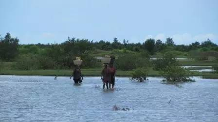 ▲孔库雷河上运输物品的当地人