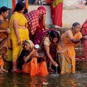 ▲印度河边取水的妇女
