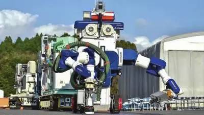 重达2.5吨、拥有两个可切换机械手臂的铲车式机器人 清除现场1号和3号反应堆被破坏产生的碎片残骸,如金属板材、掉落的管子、混凝土块和氮气罐等。