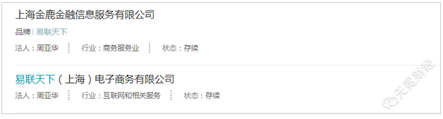▲ 据工商资料显示金鹿财行与易联天下法人均为周亚华。