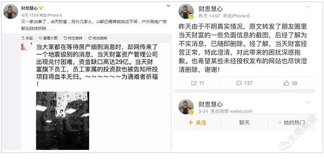 ▲曾有消息称当天财富被爆出现29亿元的资金缺口,发帖人随后删帖并澄清。