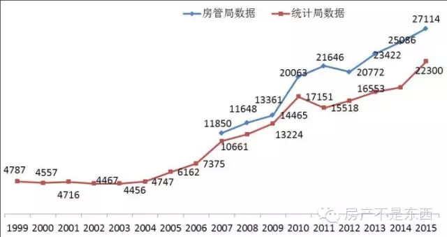以北京新房均价为例,1999年统计局数据为4787元,到2004年仍仅为4747元,六年不涨反跌。房管局数据自2007年比较完善,但到2015年也仅为27114元,大大低于普遍感受(很多媒体经常只盯高端楼盘,就以为北京房价全面突破10万)。