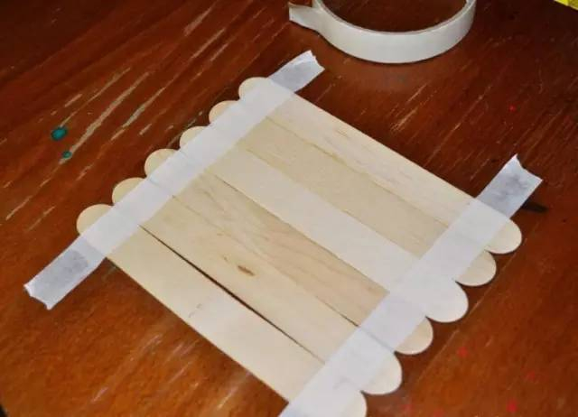 这个自制雪糕棒拼图是比较简易版的,如图将雪糕棒黏在一起