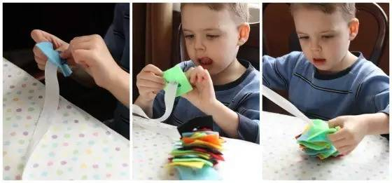 这个游戏其实就有点类似于串珠子,但比串珠子更有趣,你可以利用它来让孩子联系系扣子。