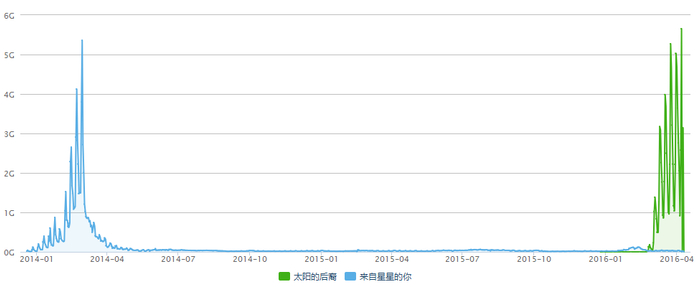 1已经吸引了24亿的点击量从独播平台爱奇艺的数据来看,这部剧已经吸引了超过24亿次观看流量。在收视热度上,《太阳的后裔》已经略胜《来自星星的你》一筹了。