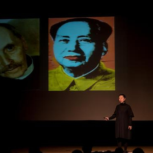 然后这幅作品呢,大家可能有看到是我们亲爱的毛主席,但他是美国的当代艺术大师安迪·沃霍尔的一个作品,如果各位去到欧美的大美术馆都会看到这幅作品,是镇馆之宝。我没有那么喜欢这幅作品,说实话我的工作是跟当代艺术有关系,但其实我的内心并不是很认同当代艺术的一些核心观念,它离人,离人心,有的时候是故意形而上的高远,没有必要。所以说我的名字我的“峤”是山高而远的意思。