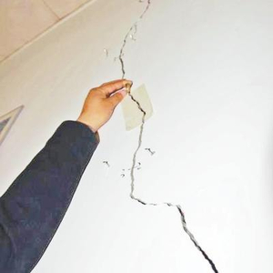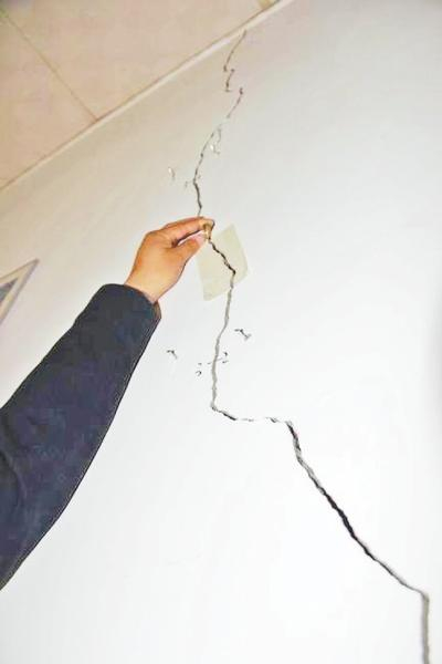【现场】墙体多条裂缝,最宽处可塞入三枚硬币