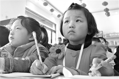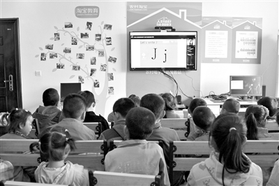 普通话课上,孩子们在屏幕上老师的指导下,用纸片对着嘴做爆破音练习,男生女生还分两队进行顺口溜大比拼;英语课上,19个孩子挤在屏幕面前,伸出小手和屏幕上的外教“Say Hi”,他们还与外教一起唱英语歌,慢慢熟悉一个个难念的英语字母;手工课上,孩子们不再只是给老师送一张手写贺卡作教师节礼物,而是第一次用折纸做成了康乃馨……这些新鲜的体验激发了孩子们的学习兴趣,下课了还在嘟着小嘴念课文、练习普通话和英语。五年级班主任周宇一直陪着孩子在教室里听完了四节课,课后,他用河南腔普通话不停地说:“挺好,老师们很专业,孩子们长了见识。”