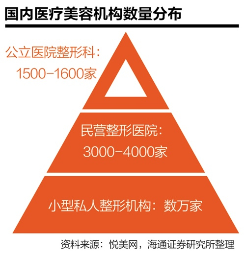 吴军介绍,中国的医美行业高度分散,卫生部门注册的医疗美容机构有10000余家,其中能占到5%市场份额的医美机构几乎没有;另一方面,竞争相对集中,正规运营的医美机构约4400个;且医生资源分配失衡,全国有4000-5000名持证医生,而数量占比超过60%的民营中小型医美机构,仅拥有全国约35%的医生资源和市场份额。