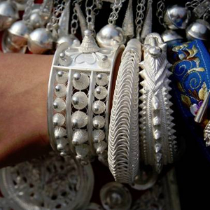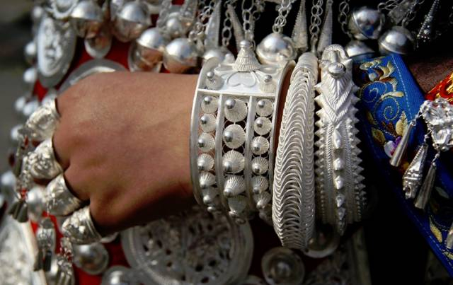 1银饰品不知道是藏银还是苗银镶松石的耳环。每家店主都会说这是纯手工打造世间仅有,绝无重样。其实某宝只要两块九,三对包邮。用不了一天,纯银就会变成纯铜,还散发一种"复古"的味道。