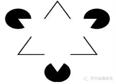 还有这幅图,我让大家看三秒钟,再闭上眼睛想一想脑海里还有什么东西,大家脑海里往往会留下的是一个大的白色的向上的三角形和一个大的黑色的倒三角形,有点像以色列的国旗。有趣的是大的白色的三角形是在画面里面没有出现过的,完全是我们脑海里才出现的这么一个现象。