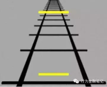 我希望大家看上面这幅图来判断上面两条黄线那条长一些,正确答案显然是一样长,但很多的观众会认为上面的长一些,有的时候大家认为上面的长一些,但你的大脑马上会告诉你这是因为参照系。