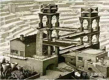 这幅图是荷兰十七世纪非常著名的版画家埃舍尔,大家仔细看一下这幅图大家就会发现有趣的地方在于,在每个阶段你都会发现这幅图非常非常合理,你把所有的信息放在一起你就会发现这幅图是如此荒谬。