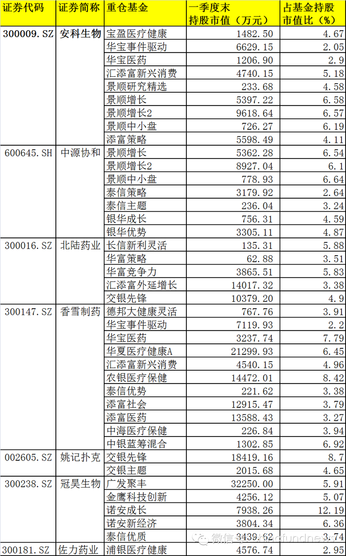 紧接着看看哪些基金在今年一季度末持有这些股票,汇添富旗下6只基金重仓持有,景顺系有7只基金持有这8只股票。但愿不是地雷啊。