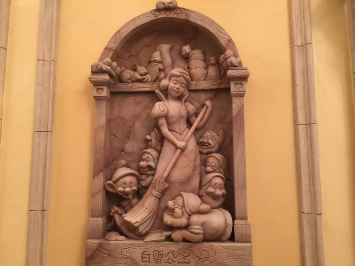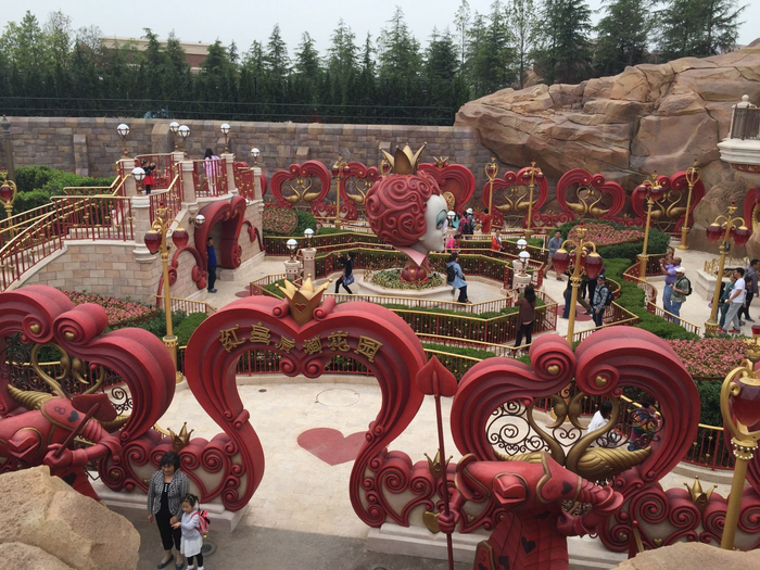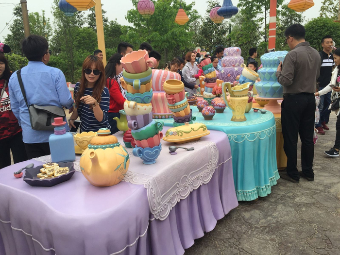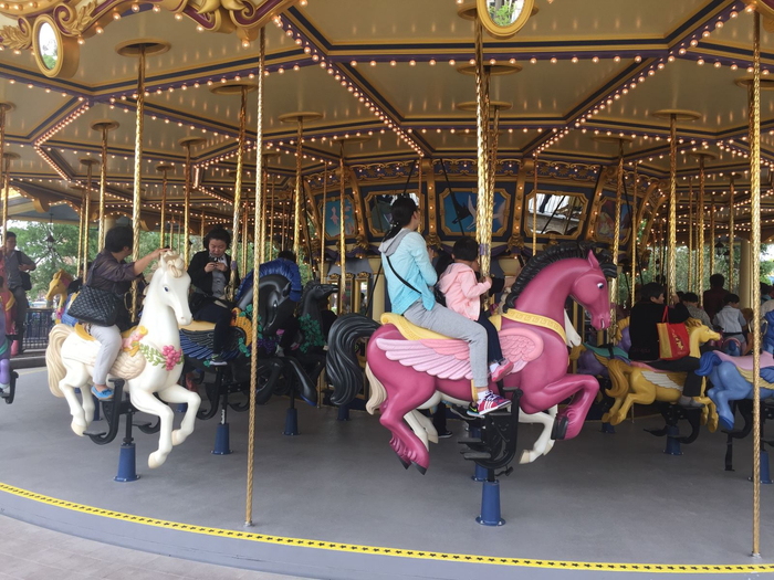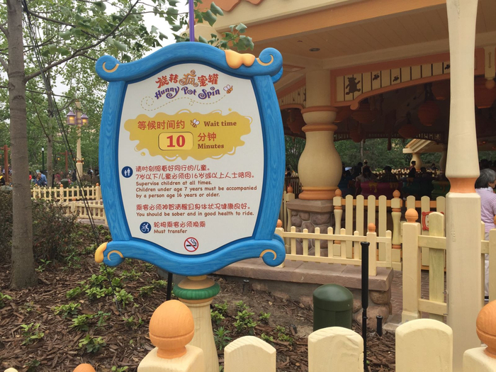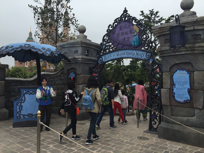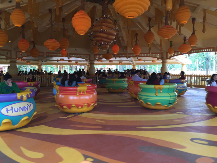 在城堡的后面是“梦幻世界”区域,包括“旋转疯蜜罐”、“爱丽丝梦游仙境”、“小熊维尼历险记”等一系列童话式游乐项目,等待时间从10分钟到50分钟不等(视客流量而定)!值得一提的是,这里在下午3点半会有一场《冰雪奇缘》演出,不容错过!