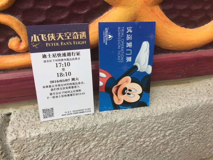 游客可以用门票在自助机器上获得快速通行证,在指定时间抵达快速通行证上的游乐项目可以节约排队时间,但是每个时段的快速通行证获取量是有限的。