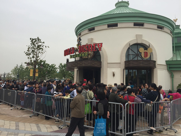 从5月7日开始,上海迪士尼小镇部分商户开业,迪士尼世界商店也迎来了第一批客人,从早晨9点开始,客人就在商店门口排起了长队,为了维持秩序,迪士尼小镇上的热门商铺——迪士尼世界商店和乐高门店在高峰时采取限流,以控制店内人数,保障客人安全。