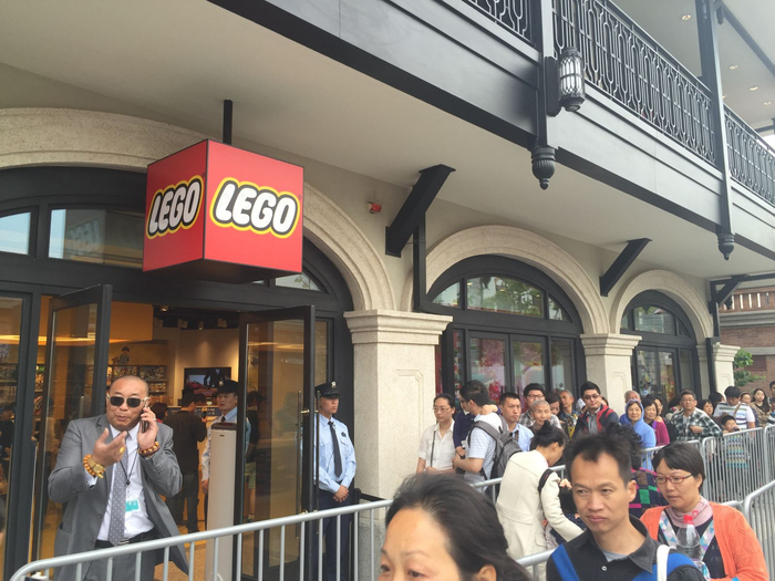 早晨10点多,进入到迪士尼小镇,部分商户开业了,尤其是迪士尼世界商店和乐高门口,已排起长队