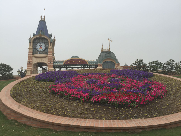 进入上海迪士尼乐园后,首先看到的就是具有标志性的米奇花坛,这在美国迪士尼乐园也是类似哦!