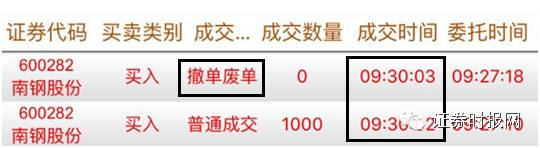 买入委托是9:27:10,撤单委托是9:27:18。9:30:02成交买入委托,9:30:03撤单委托成为废单。