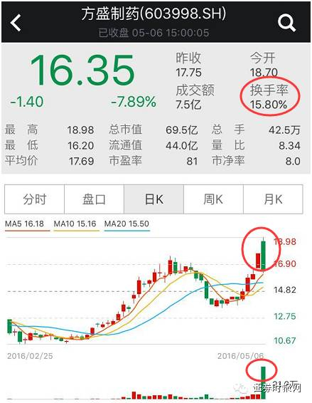 还有方盛制药(603998),看完它5月6日的全天走势之后,你就完全能理解它在早盘9:15-9:20之间为何要用大单托举至涨停:强力诱多、高位出货。
