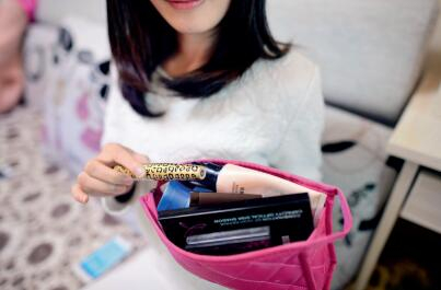 在接受采访的过程中,喵喵一边聊着自己的主播生涯一边抓紧卸妆。她告诉记者,为了晚上这3个小时的出镜,自己贴了三层假睫毛,还特意在紧身T恤里做了一些“手脚”。