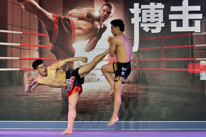 两位搏击选手在表演