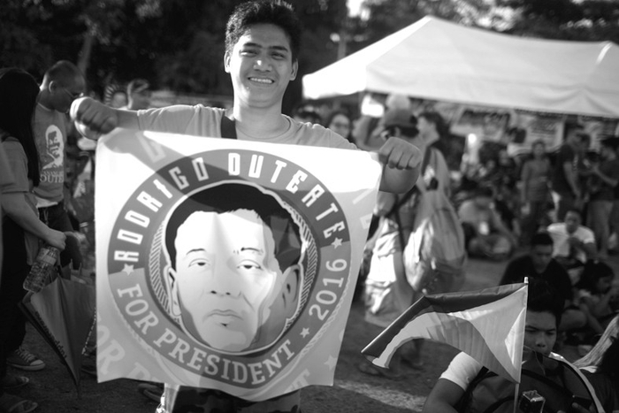 5月7日,投票前两日,马尼拉街头出现各式游行。大家身着不同颜色的衣服,举着不同的牌子和标语。在4个候选人的集会中,杜特尔特的集会规模最大。集会在黎刹公园举行,从上午到深夜,一直有民众陆续前去参加。周边有许多小贩在兜售有杜特尔特头像的T恤,头像下面是“Change”(改变)。