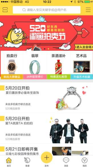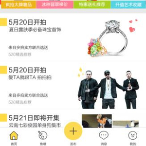5月20日,阿里巴巴启动首届闲鱼拍卖节,这是近日闲鱼和拍卖牵手之后,推出的首次拍卖盛典,来自非遗工艺品、二手车、海外房产、名包名表等20多个类目,超过15000件拍品同步上线。今起登陆闲鱼,粉丝可抢拍偶像私人物品,投资客可竞拍海外房产,果粉可以获得1元竞拍收藏收藏iPhone全系列的机会,老手工艺人的非遗作品也将通过“分享经济”真正找到的价值。