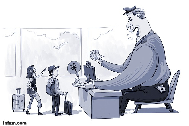 中国人外出时的不合法行为,也为这种权力寻租留下空间。许利平举例说,一些中国人从事与签证无关的活动(例如拿着旅游签证务工),这种不合法行为让某些外国海关人员将中国入境者当做“猎物”。