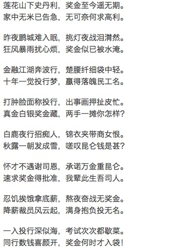 不过这似乎也挡不住招商证券员工的怒火啊,没发就是没发!于是讨薪进入第二环节:诗人登场,发帖作诗,藏头打油。