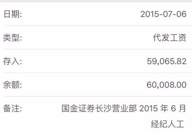 国金证券长沙员工截屏工资单,去年7月拿了6万,今年5月拿了1300元。
